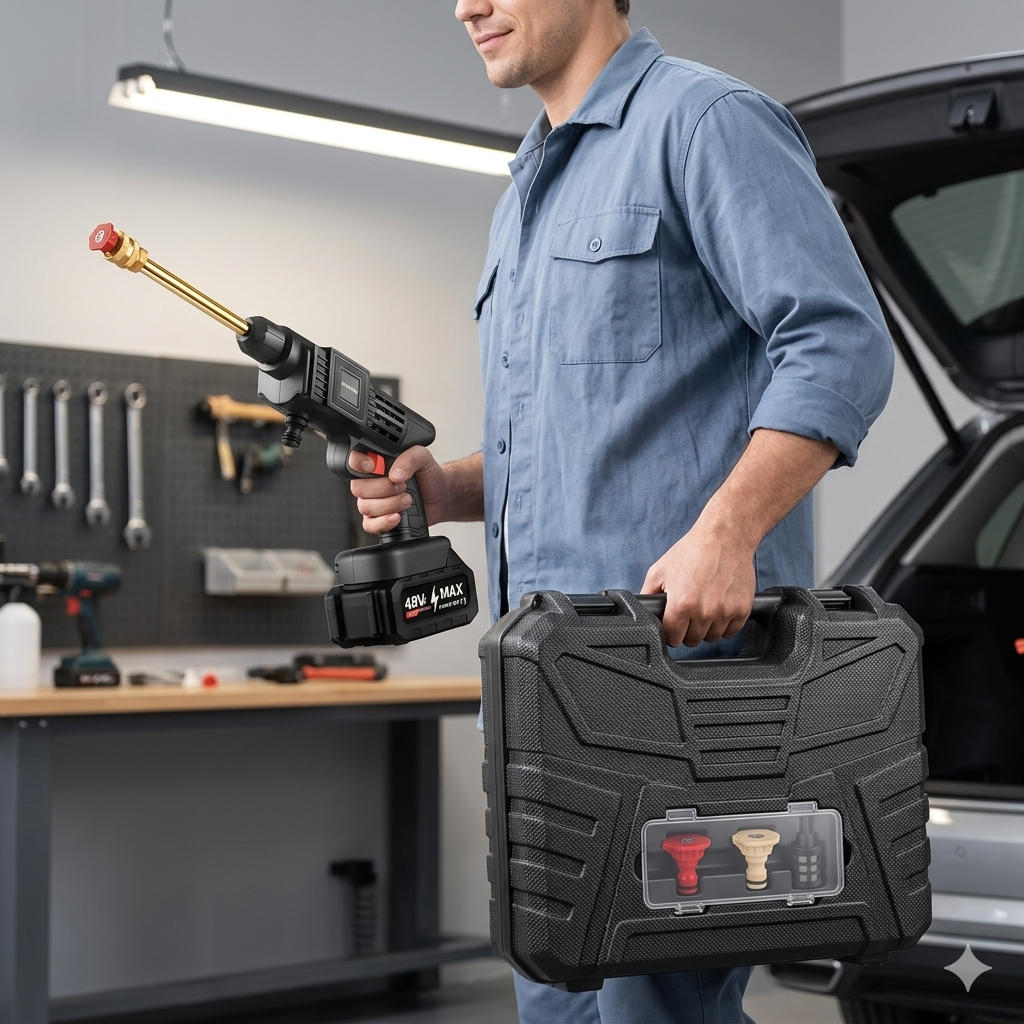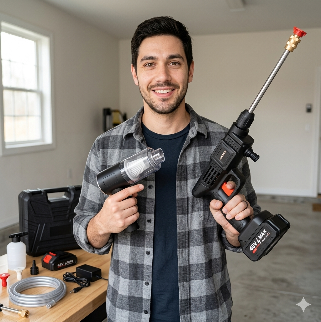 La mayoría de herramientas de limpieza solo hacen una función. Este combo integra lavado y aspirado profesional en un solo kit portátil.